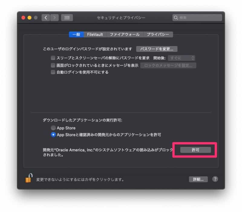 もし、Mac でエラーが出てインストール出来ない場合は、「設定 > セキュリティとプライバシー」で許可を与えるとインストールできます。