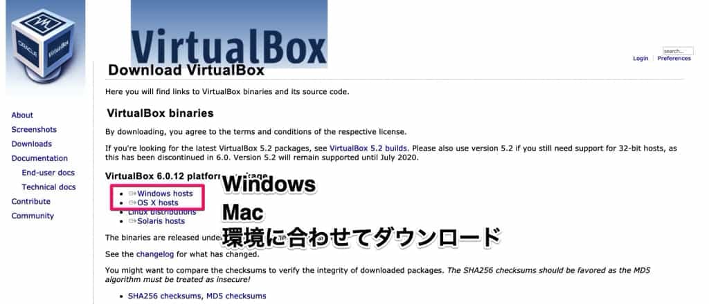 上記ページから Virtuboxbox ダウンロードサイトへ移動します。